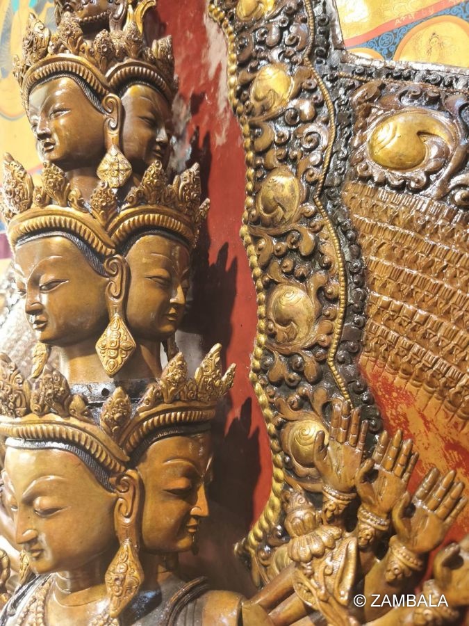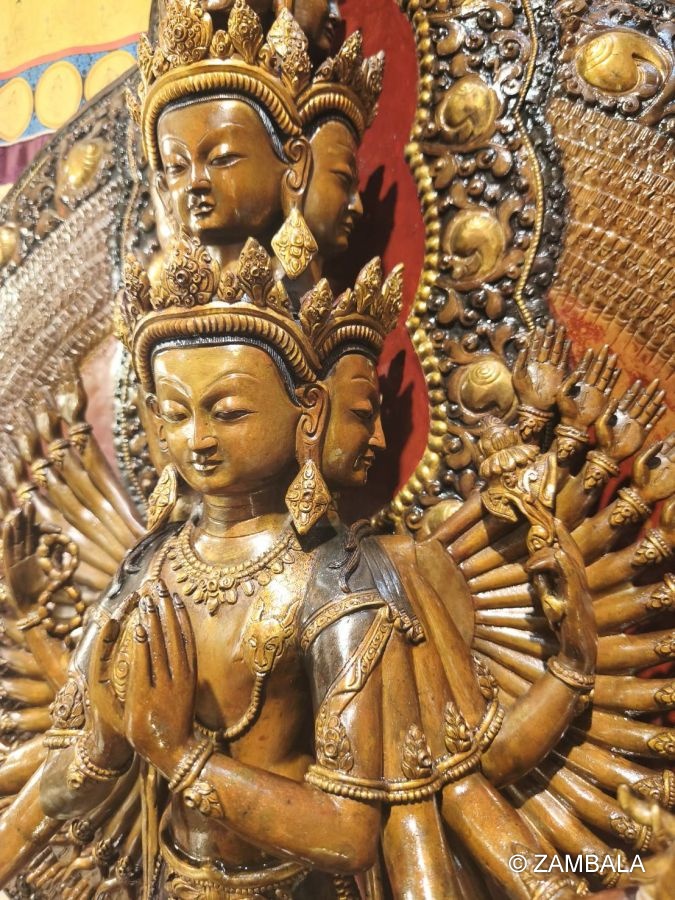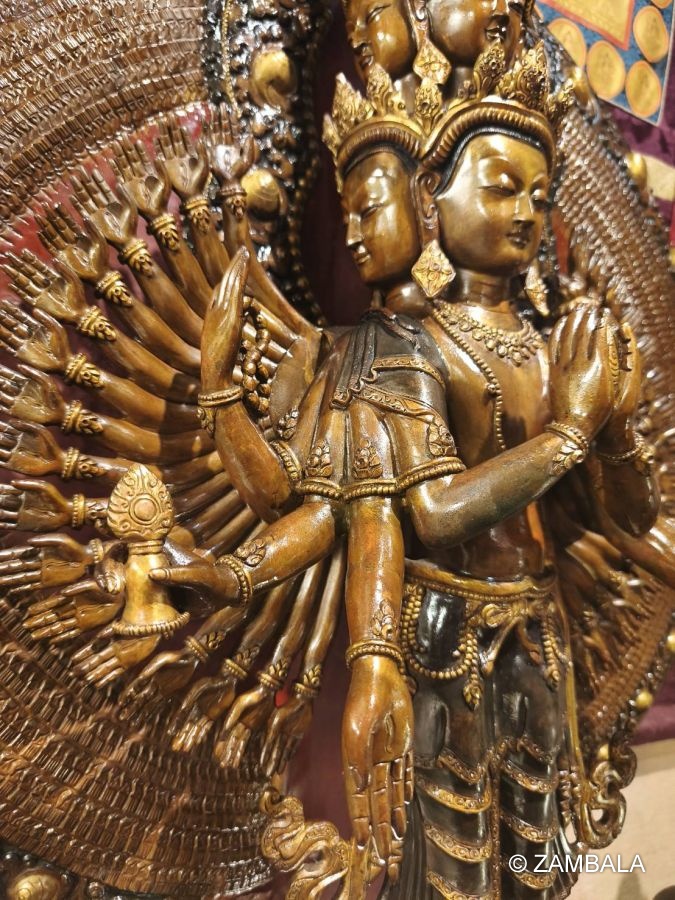 - **Rituals and Practices**: Many temples hold "Thousand-Armed Avalokitesvara" ceremonies, where participants collectively recite the Great Compassion Mantra (derived from the Thousand-Armed Sutra), the core mantra of the Thousand-Armed Avalokitesvara, believed to ward off disasters, bring blessings, and fulfill wishes. In Tantric Buddhism, or Tibetan Buddhism, the Thousand-Armed Avalokitesvara is a prominent deity. Practitioners cultivate compassion by visualizing the bodhisattva's thousand arms and thousand eyes through meditation and mandala rituals.