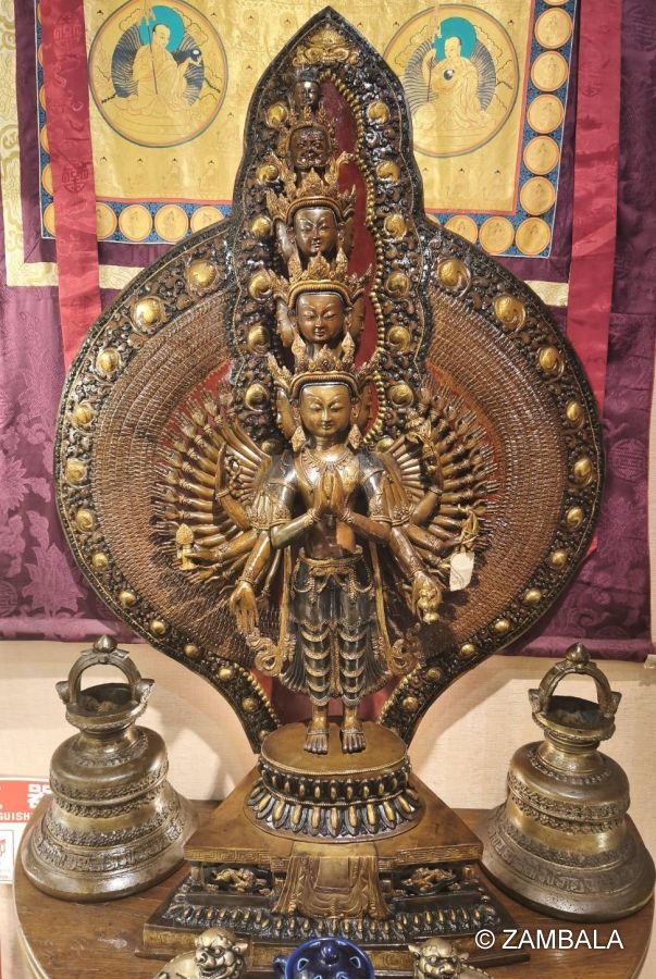 - **Offerings and Prayers**: Statue of the Thousand-Armed Avalokitesvara is often placed in the main hall of a temple or at a family altar. During these rituals, believers offer flowers, incense, and water, praying for the bodhisattva's compassion and blessings. Especially on festivals such as the 19th day of the second lunar month (Avalokitesvara's birthday), the 19th day of the sixth lunar month (Avalokitesvara's enlightenment), and the 19th day of the ninth lunar month (Avalokitesvara's ordination), large-scale ceremonies such as releasing animals, fasting, and chanting are held to emphasize the bodhisattva's universal salvation.