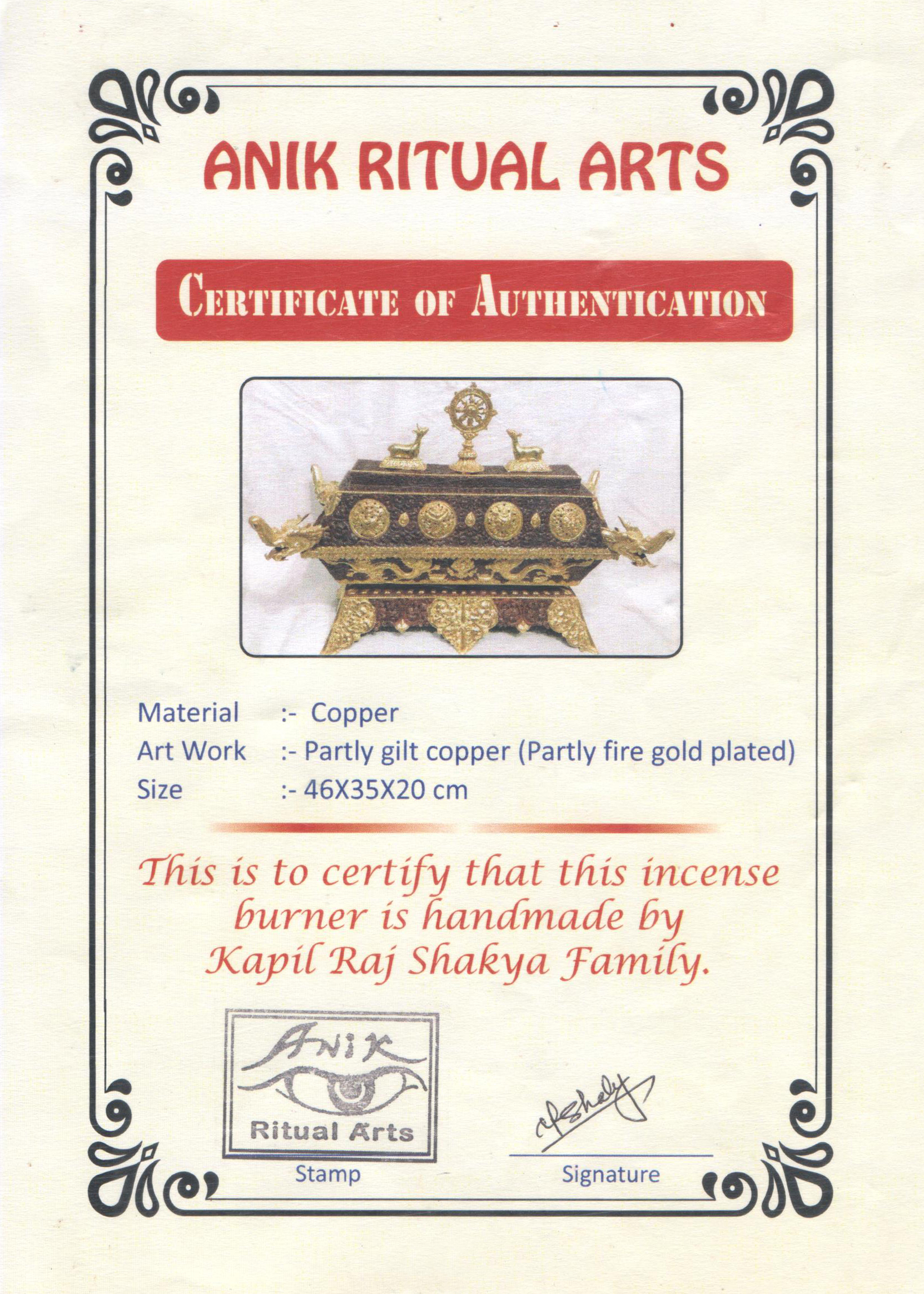 Material: Handmade red copper half-gilded lying incense burner from the Sakya tribe of Nepal