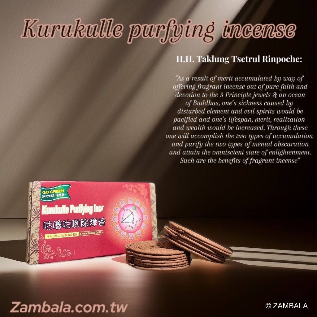 This contains countless precious and rare fragrant medicinal plants, the precious nectars of the four traditions of Tibetan Buddhism, and other blessed materials. This has been made according to the instructions in the scriptures and especially blessed with grand offering puja of the Goddess Kurukulle. When offering by burning, we will receive the power of winning over men and gods and be able to stay in the blessed light of the Goddess Kurukulle. Incense is an indispensable aid in meditation practice as it purifies the air, calms the mind and centers the energy.